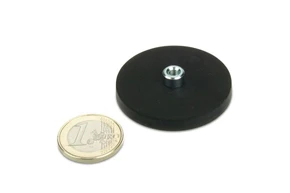 Common size of rubber coated(rubberized)base magnets that with threaded bushing various from 12mm to 88mm in diameter, the size is bigger and the strength is stronger. Most of internal threaded rubber coated base magnet with threaded bushing are supplied in black color.